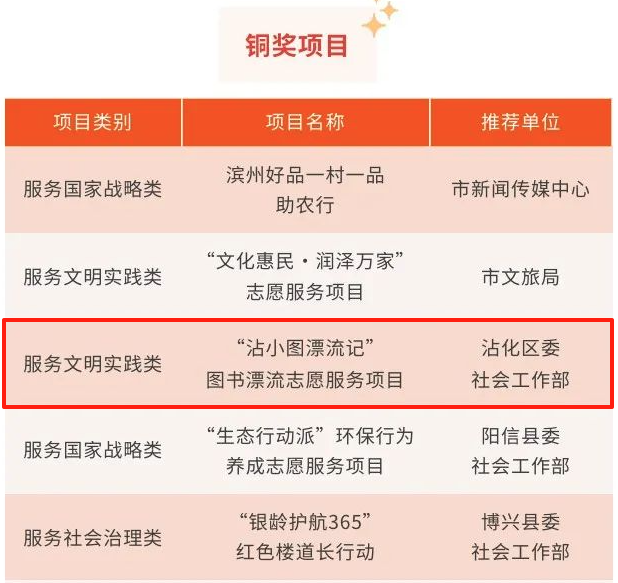 耕耘终有收获,暑期的沾化区图书馆收获了荣誉满满:在2025年滨州市大学生“返家乡”社会实践活动中,获评“优秀组织单位”荣誉称号;与此同时,沾化区图书馆特色服务项目—“沾小图漂流记”图书漂流志愿服务项目,在2025年滨州市志愿服务项目大赛中脱颖而出,荣获铜奖。这些荣誉不仅是对图书馆工作的肯定,更化作继续前行的动力,见证着文化传播路上的每一步坚实足迹。
